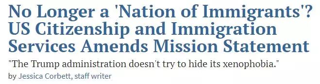 也就是说,官方已经确认“美国不再是一个移民国家”这个基调,认为这样更适合美国现在的国情。